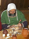 Doch auch Schwert- und Dolchscheiden, Pfeil- und Bolzenköcher hat Meister Kristan in seinem Repertoire. Meister Kristan arbeitet mit Nachbildungen historischer Werkzeuge ausschließlich von Hand.