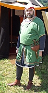 Das Handwerk Meister Kristans ist die Täschnerei. Aus bestem Leder fertigt er die feinsten Taschen und Beutel. Und auch die Beschläge fertigt er aus Knochen, Geweih und Bronzeblech gleich passend mit dazu.