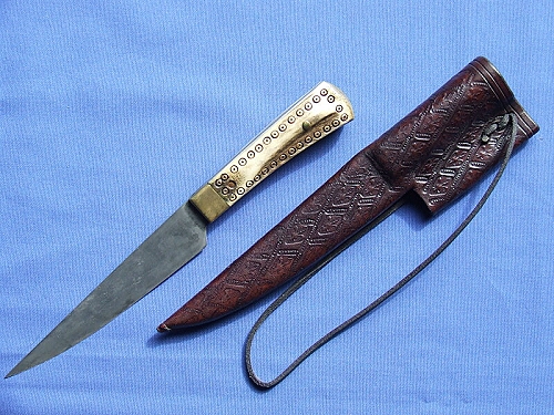 Im 14. Jahrhundert kommen vermehrt Messer mit Flachangel in Gebrauch. Dieses ist eine Replik eines Fundes aus den Themse-Grabungen.