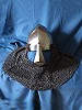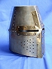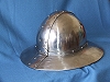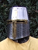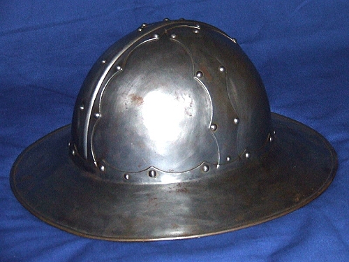 Der Eisenhut ist ein typischer Helm des Fußvolks. Mit seiner breiten Krempe schützt er auch die Schultern vor Schlägen von oben. Doch auch die Herren Ritter greifen im abgesessenen Kampf gerne zu diesem Helmtyp.