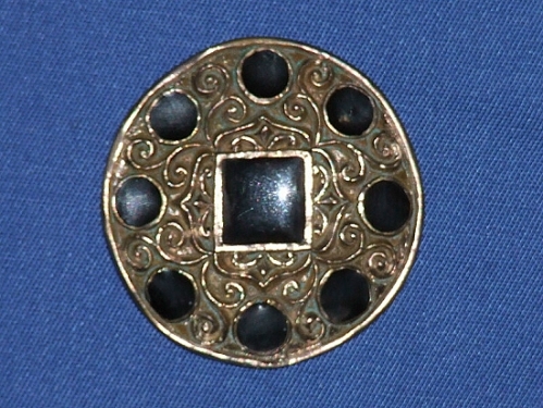 Eine Scheibenfibel mit Email-Einlagen.
