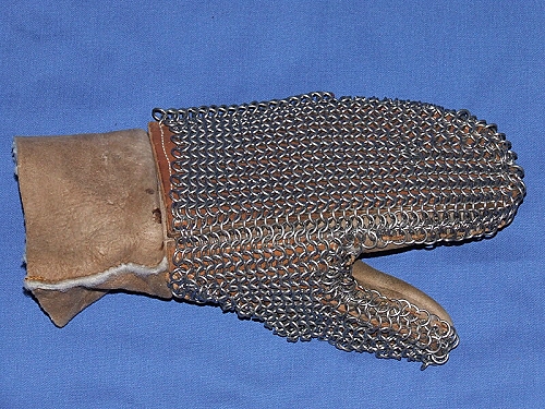 Um 1300 sind Handschuhe aus Kettengeflecht meist noch integraler Bestandteil des Kettenhemds. Erstmals werden diese Handschuhe auch separat getragen.