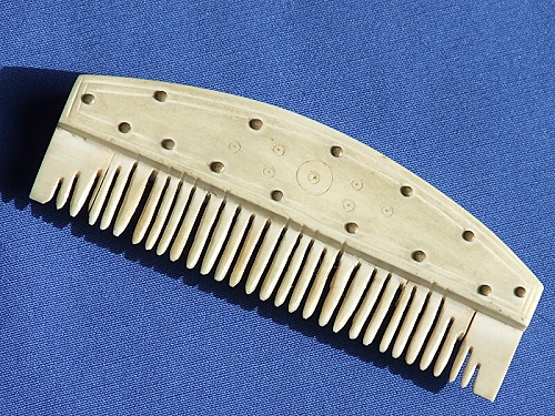 Kämme bestehen vielfach aus Knochen. Dieser ist aus drei Lagen zusammen genietet - ein Dreilagenkamm.